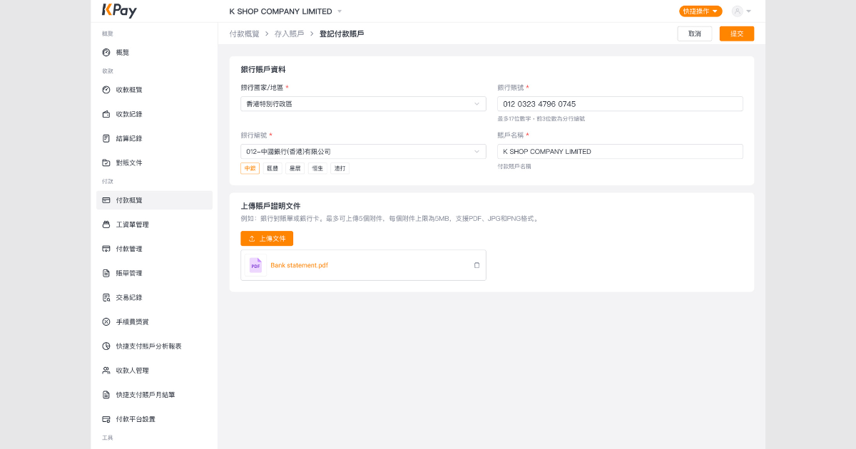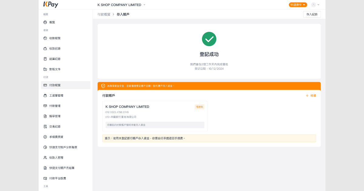 適用對象:已開通KPay 商業賬戶的商戶
